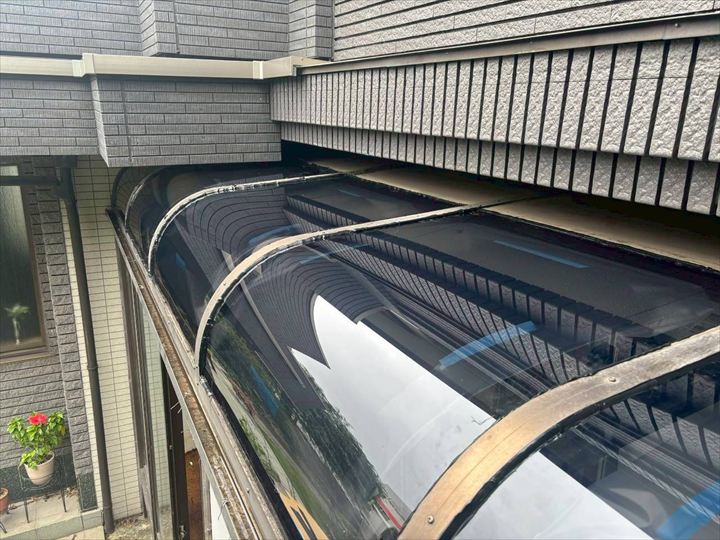 築27年、7年前に屋根外壁の塗装は行ったそうですが、天窓に関しては、今まで一度もメンテナンスを行った事がないそうです。天窓も経年で劣化します。基本的に10年前後で窓まわりのパッキン・シール材の劣化が予想されます。点検を行い、劣化が激しい場合は打ち替える必要があります。20年もすれば天窓自体の寿命も考えなければなりません。周りの木枠や窓まわり、屋根と接している板金部分や屋根まわりの下地や防水紙などの絡みも考え、本体の交換が必要な場合が出てくる時期でもあります。F様宅は約27年間、天窓に関してはメンテナンスを行っていないとの事もあり、経年での劣化が原因で雨漏りを引き起こした可能性が高いと考えられます。