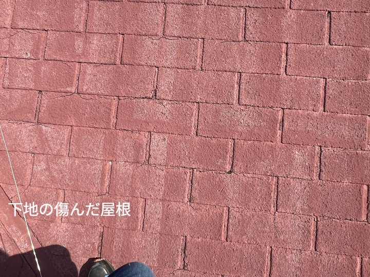 劣化と風雨によって、完全に表面の石粒が取り除かれてしまったケース。恐らく内部では漏水が始まっているでしょう。