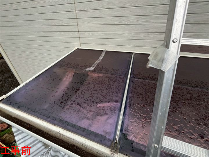 まずは直上のルーフバルコニーですがシート防水が施されていましたが、少々荒れや立ち上がり付近の剥がれが目立ちました。
