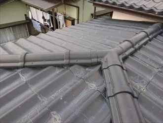 相模原市南区旭町にて下地が腐朽したかわらUの棟をガルバリウム鋼板製の棟板金へ交換工事を実施
