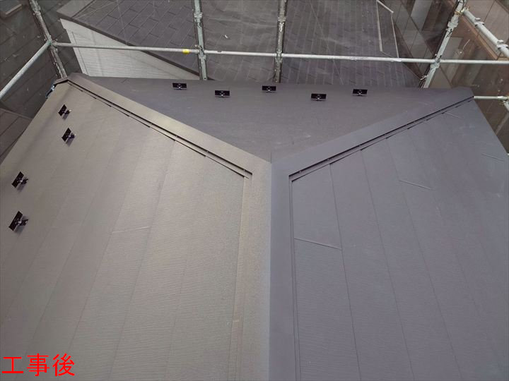 棟板金を取り付け終わったら、屋根カバー工事の完成です!