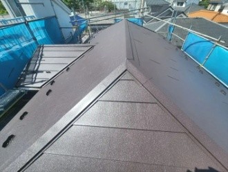 新設した棟板金についても、屋根本体と同様に塗装を行います。
