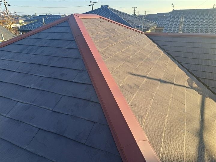 また、塗装前に行った下地調整や高圧洗浄、棟板金交換と併せることで、屋根全体の機能性も向上しており、長期的なメンテナンス効果が期待されます。